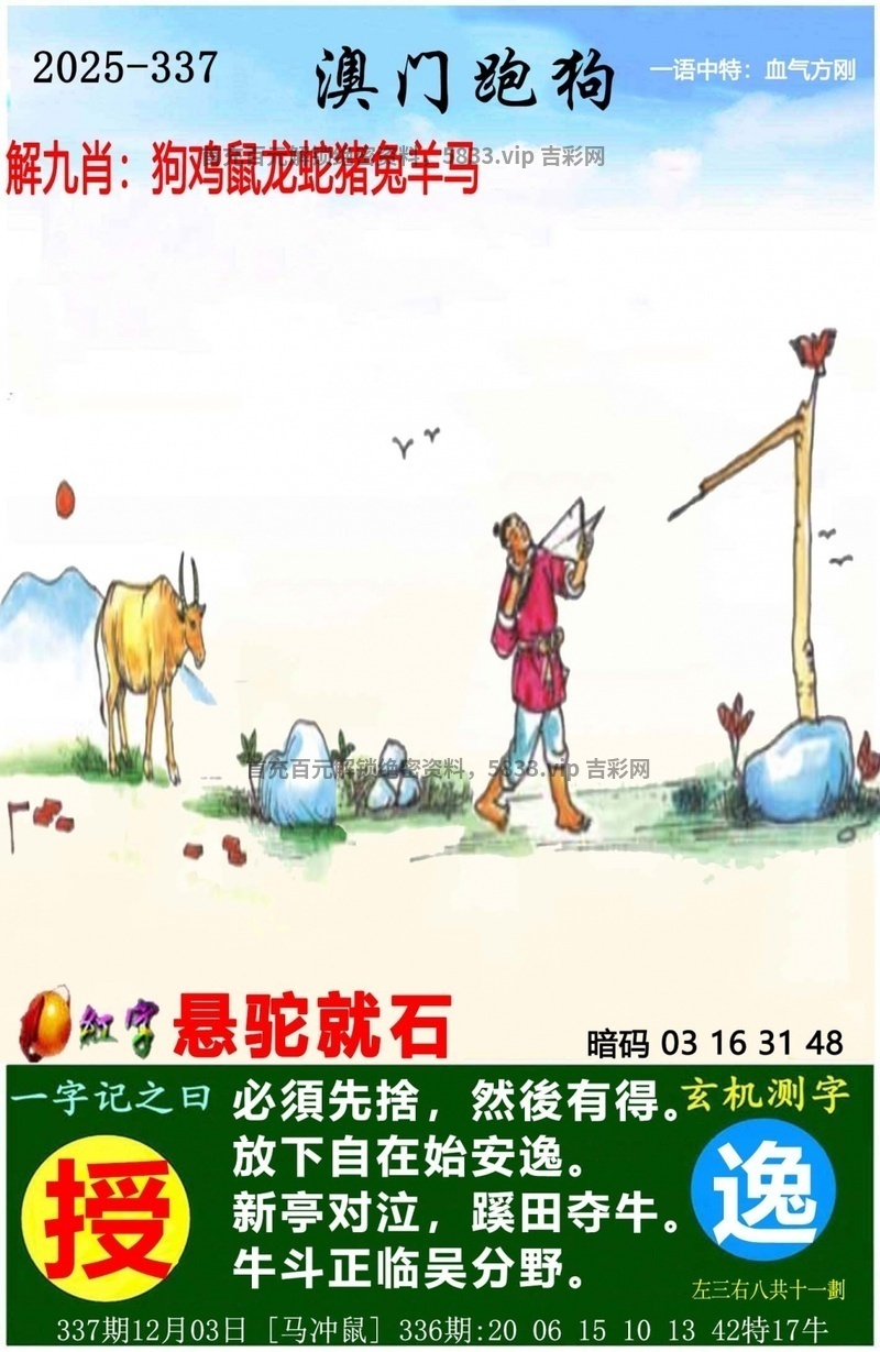 | 336期:🛑绝杀一合【04合】开:牛17中 |